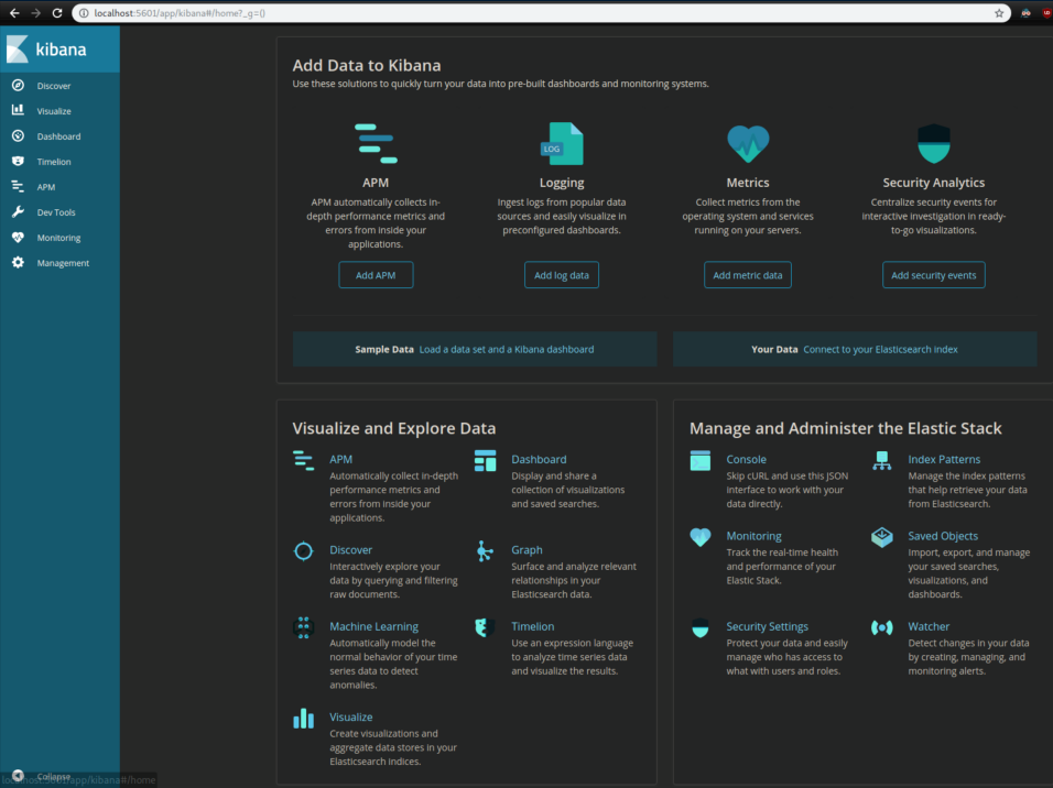 Now we can access the GUI for Kibana:
