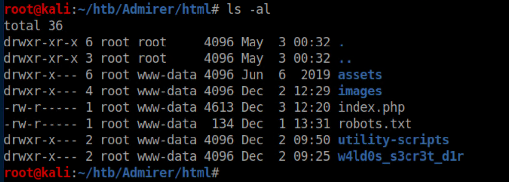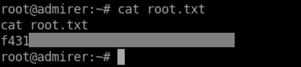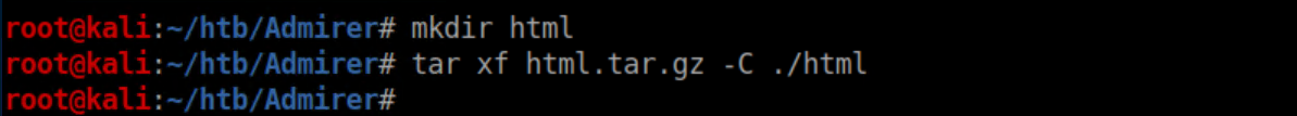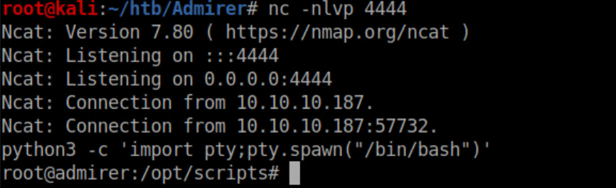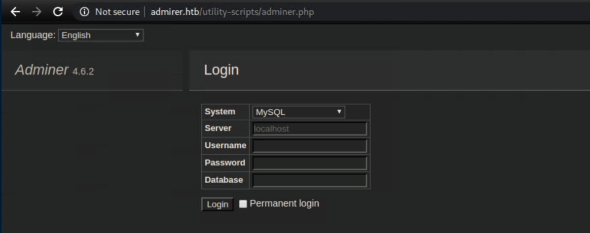 Then I granted the root user on admirer.htb access to it: