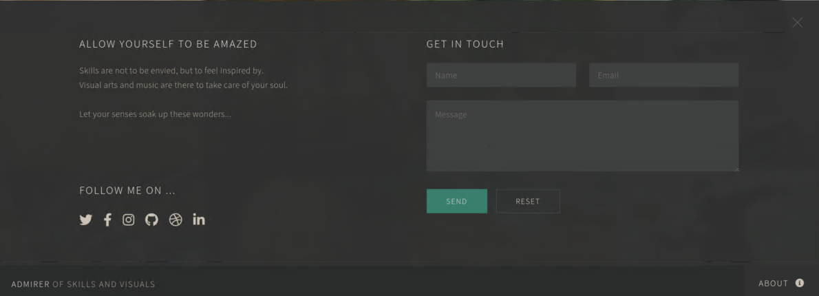 Clicking on the 'about':