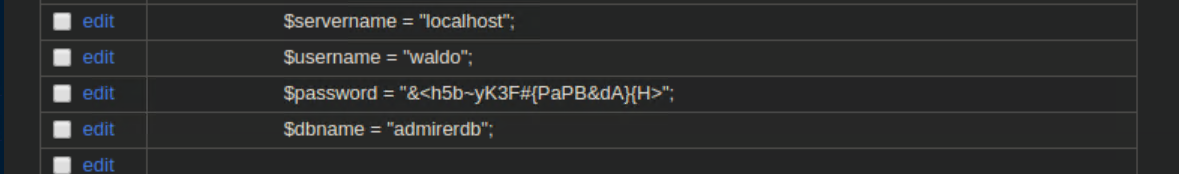 There were creds in the index.php file that didn't work anywhere so I took a look inside the utility-scripts folder: