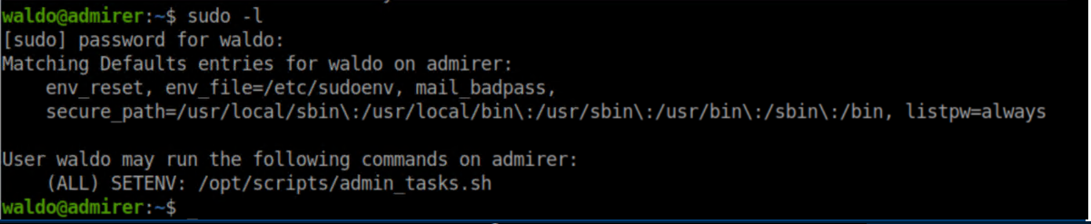 Waldo has sudo access to set an environment variable and to run a shell script: