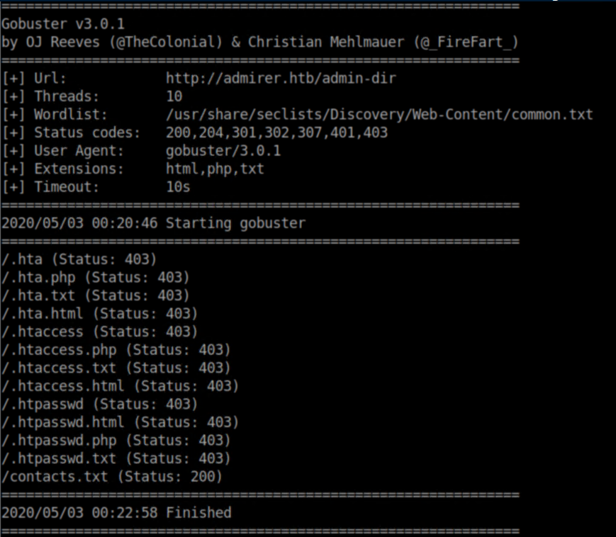 I ran gobuster on the root directory and came up with nothing. Gobuster on the admin-dir came up with something: