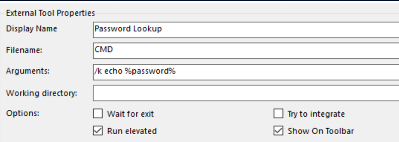 Following the steps in the article, I downloaded and installed mRemoteNG then created a new external tool in it: