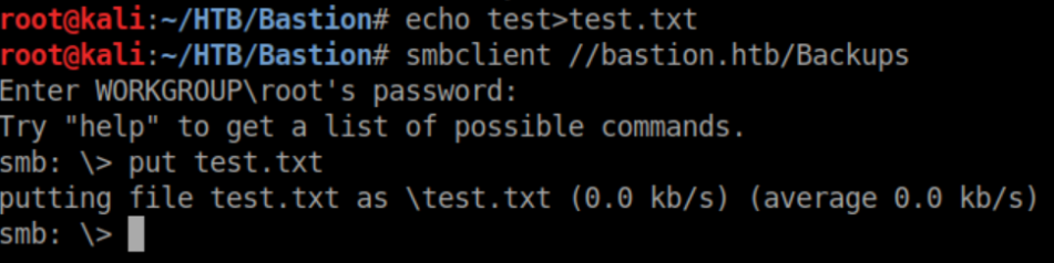 That exe file looks like someone else's malware which probably means we have anonymous write access to the share. Let's confirm just in case:
