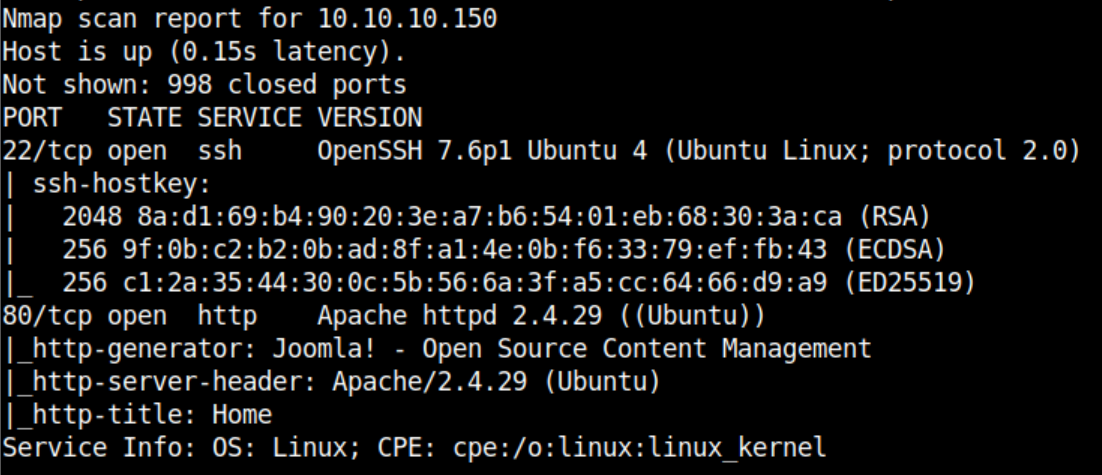 + http://10.10.10.150/index.php (CODE:200|SIZE:14354)