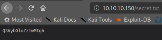 Hitting up http://10.10.10.150/secret.txt gives us a string: