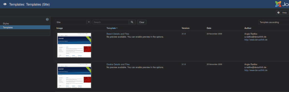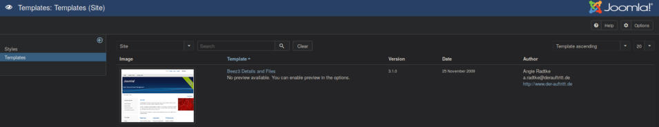 Here we see a template named Beez3: