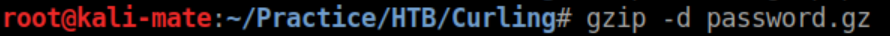 We rename the file to password.gz and use gzip to decompress it: