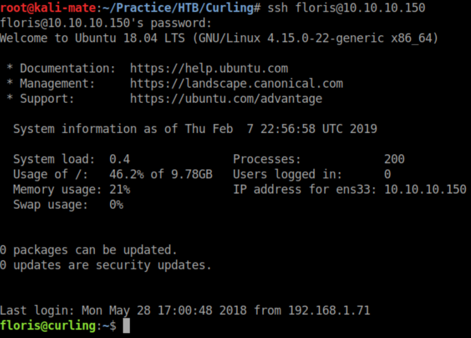Now we can finally ssh in as floris: