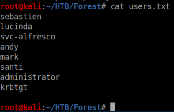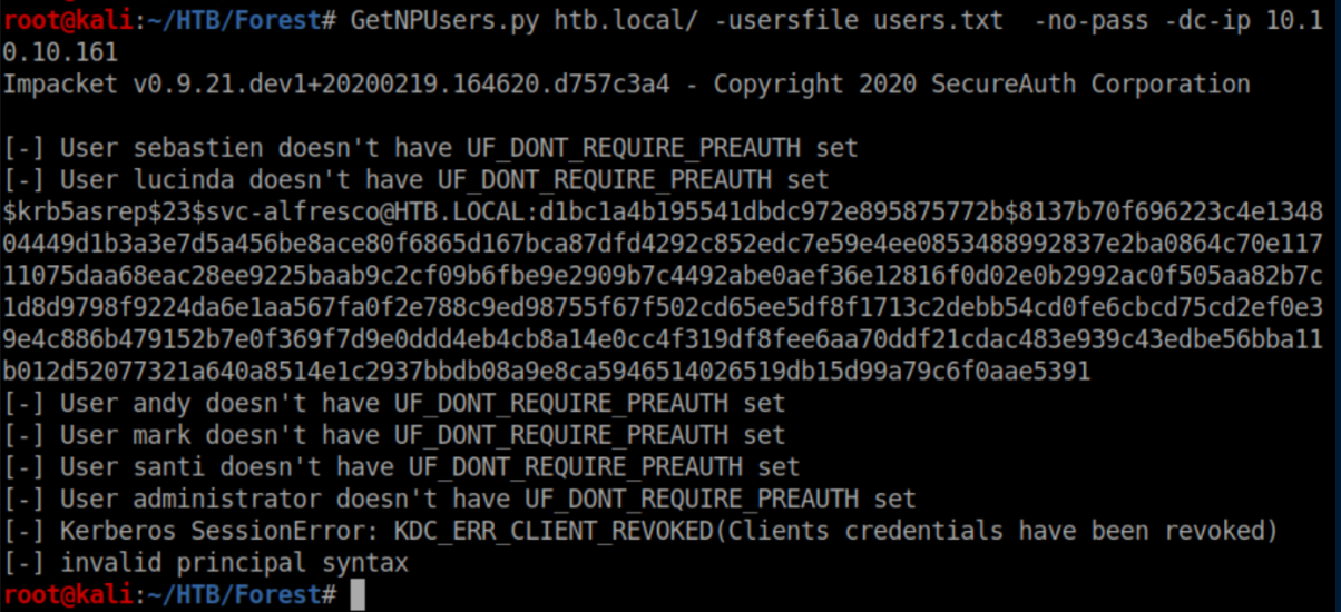 GetNPUsers.py from the Impacket suite was run with the user list: