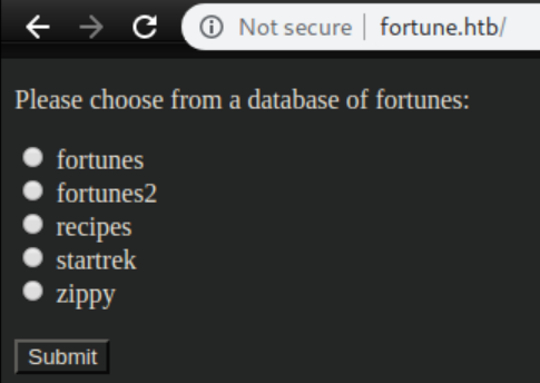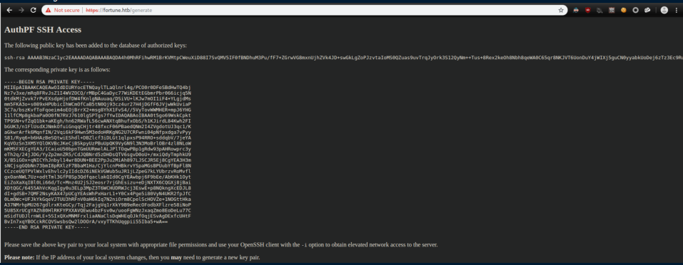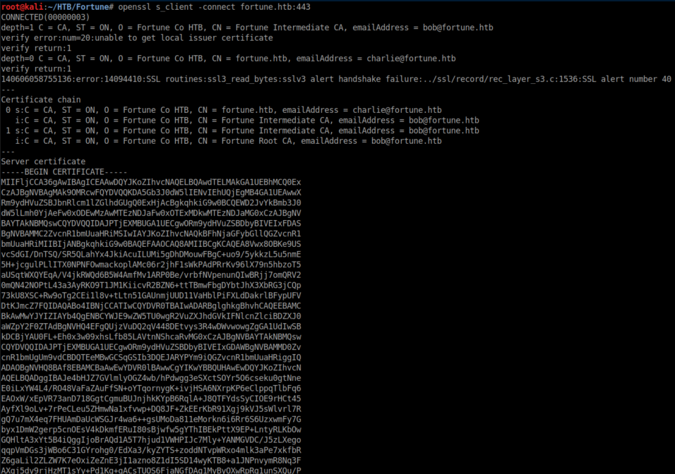 Now when I load up https://fortune.htb, I'm prompted to choose the certificate: