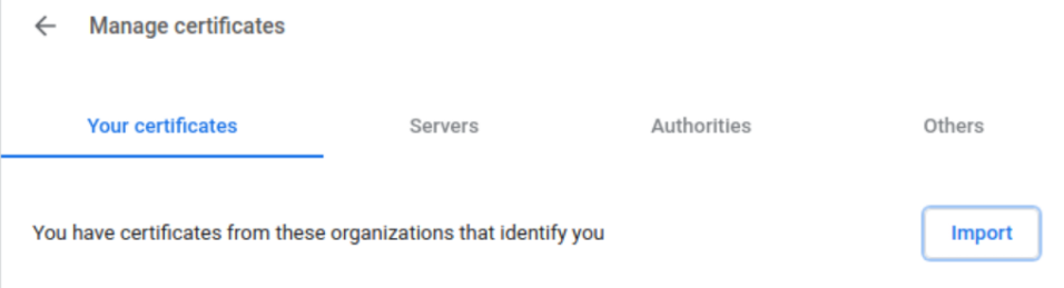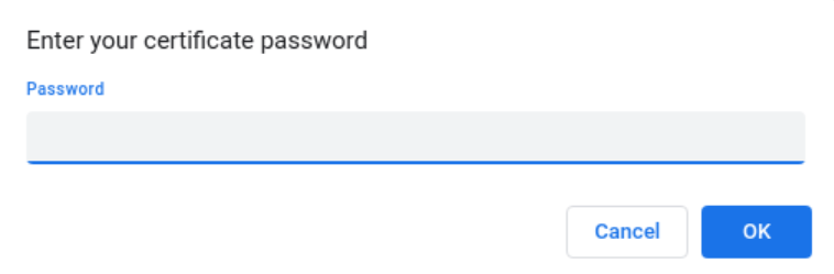 Click on 'Import', select the new .p12 file and get prompted for a password:
