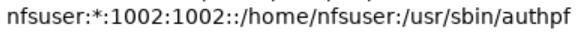 From the page, we can see it's a key for AuthPF. When I initially enumerated the system, /etc/passwd had 'nfsuser' with the shell '/usr/sbin/authpf':