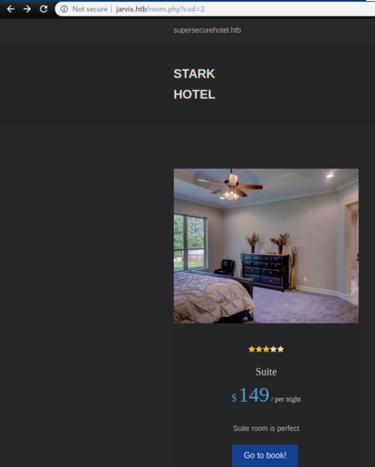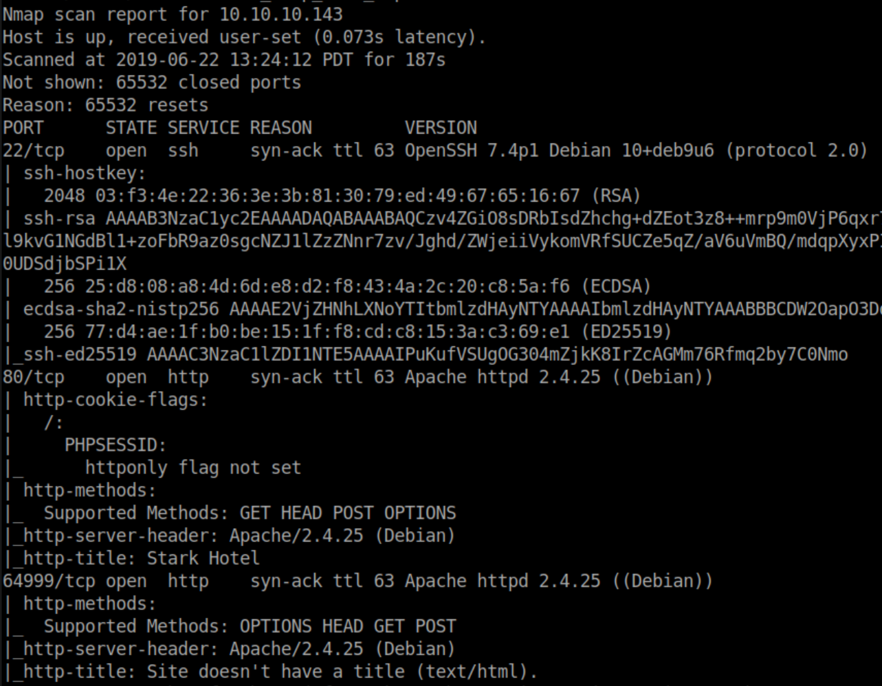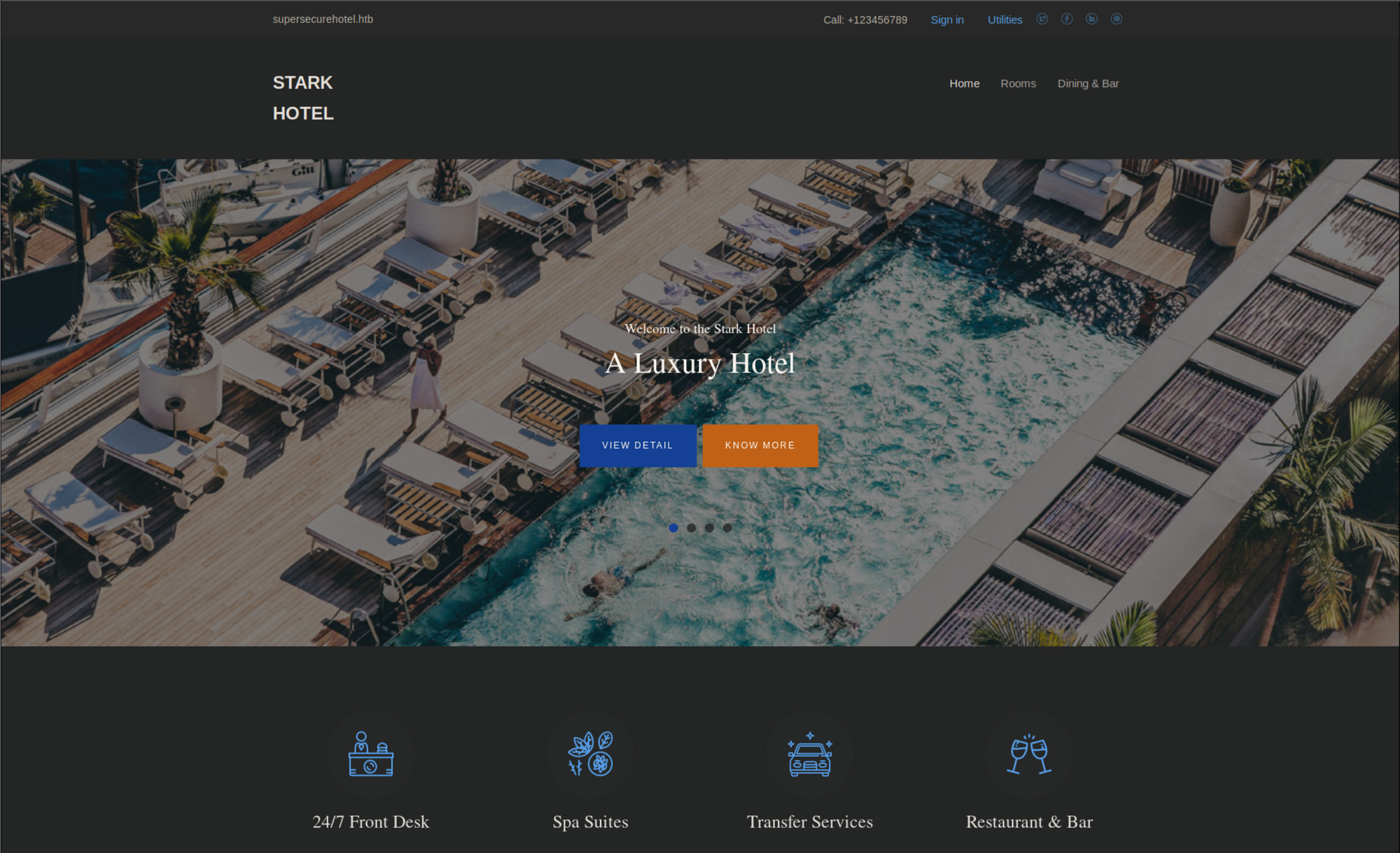 There didn't appear to be anything else there so checked port 80 and found a site for 'Stark Hotel'