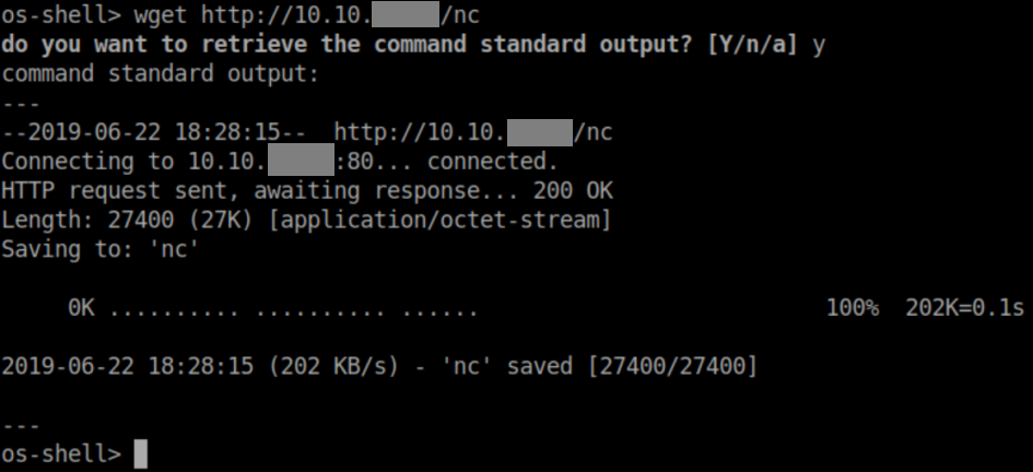 Next I started a python http server on my machine and downloaded netcat to Jarvis: