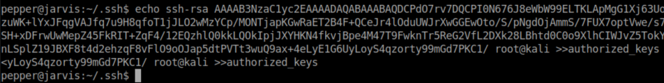 Then appended the contents of id_rsa.pub to /home/pepper/.ssh/authorized_keys: