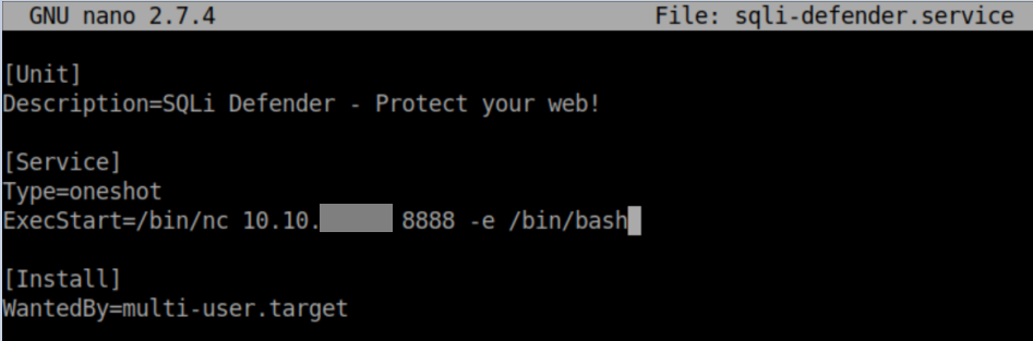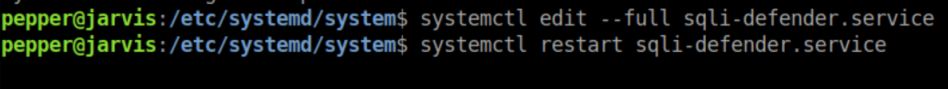 Edit it by running systemctl edit --ful sqli-defender.service and changing the 'ExecStart' value: