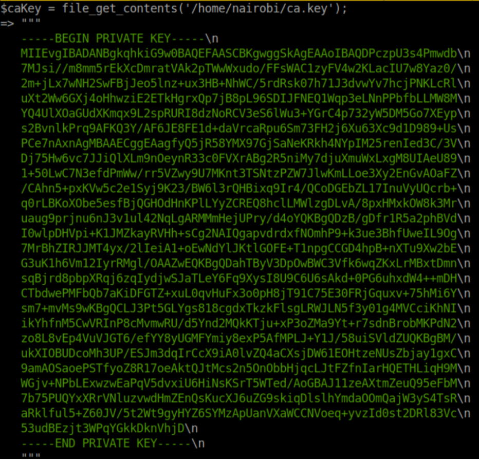So following the hunch that getting past Dali was the way to go, I cleaned up that ca.key file and saved it as ca-clean.key. I got the server certificate from nmap results and saved that as server.crt: