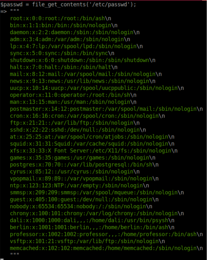 While I was at it, I viewed /etc/passwd to get an idea of users on the system: