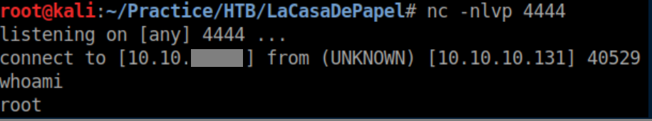 With a netcat listener on 4444, I get a root shell shortly afterwards: