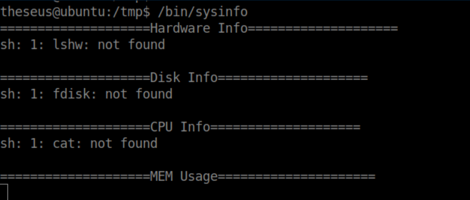 Now, the important step of setting the path to /tmp so that /bin/sysinfo would look there for free first: