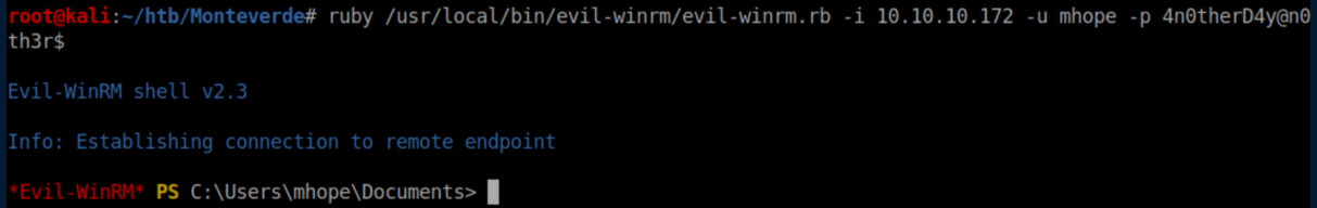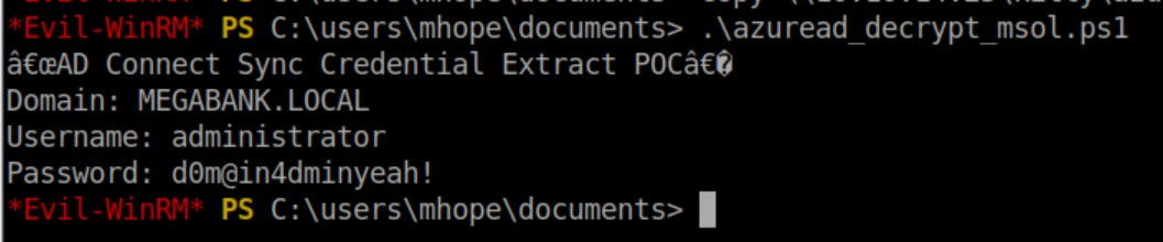 I have a feeling that vbscrub (a Windows wizard who has created some boxes for HTB and has a great youtube channel) took pity on everyone struggling to get the above PoC working because he posted an article a few days after Monteverde was released. In it, he goes over the exploit and links to a compiled program you can simply run: