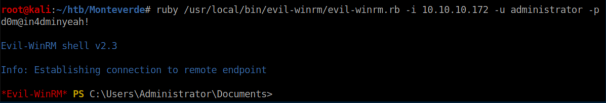 With the administrator password, we use Evil-WinRM again to get an admin shell: