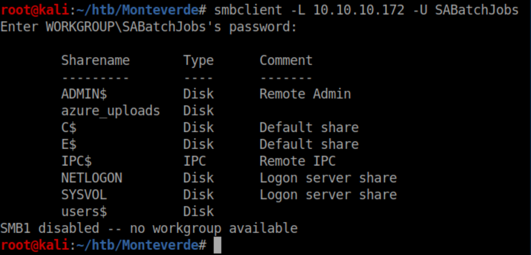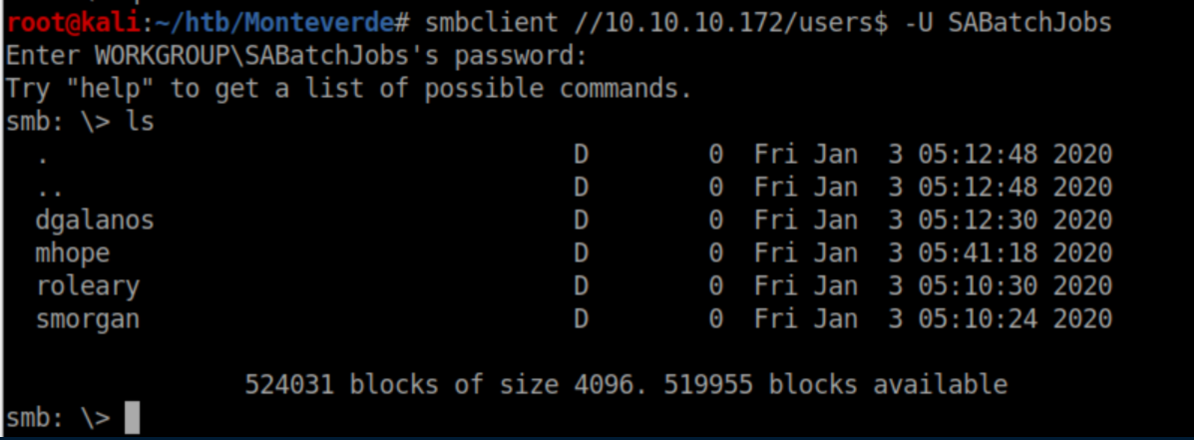 I started poking around in the shares and was somewhat surprised to find that 'SABatchJobs' had access to the 'users$' share: