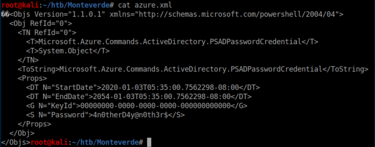 Monteverde was a medium difficulty Windows box in which lazy password practice combined with password spraying allowed access to a SMB share. An Azure XML file was found with another password which was again sprayed to get a shell. The compromised user was a member of the 'Azure Admins' group and these privileges were abused to become domain admin on the box. Pretty nifty and I got to learn a bit about Azure.
