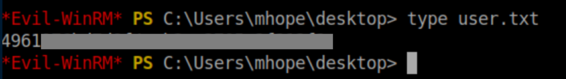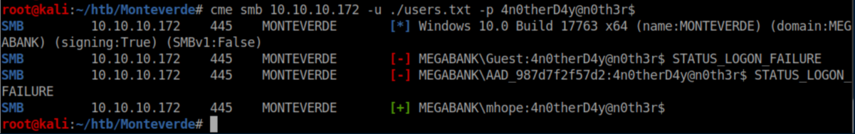 In theory, I could have just tried the password with mhope's account but it's quite fun to password spray so that's what I did: