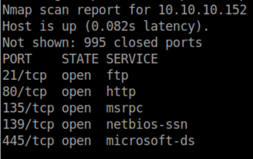 Nmap results: