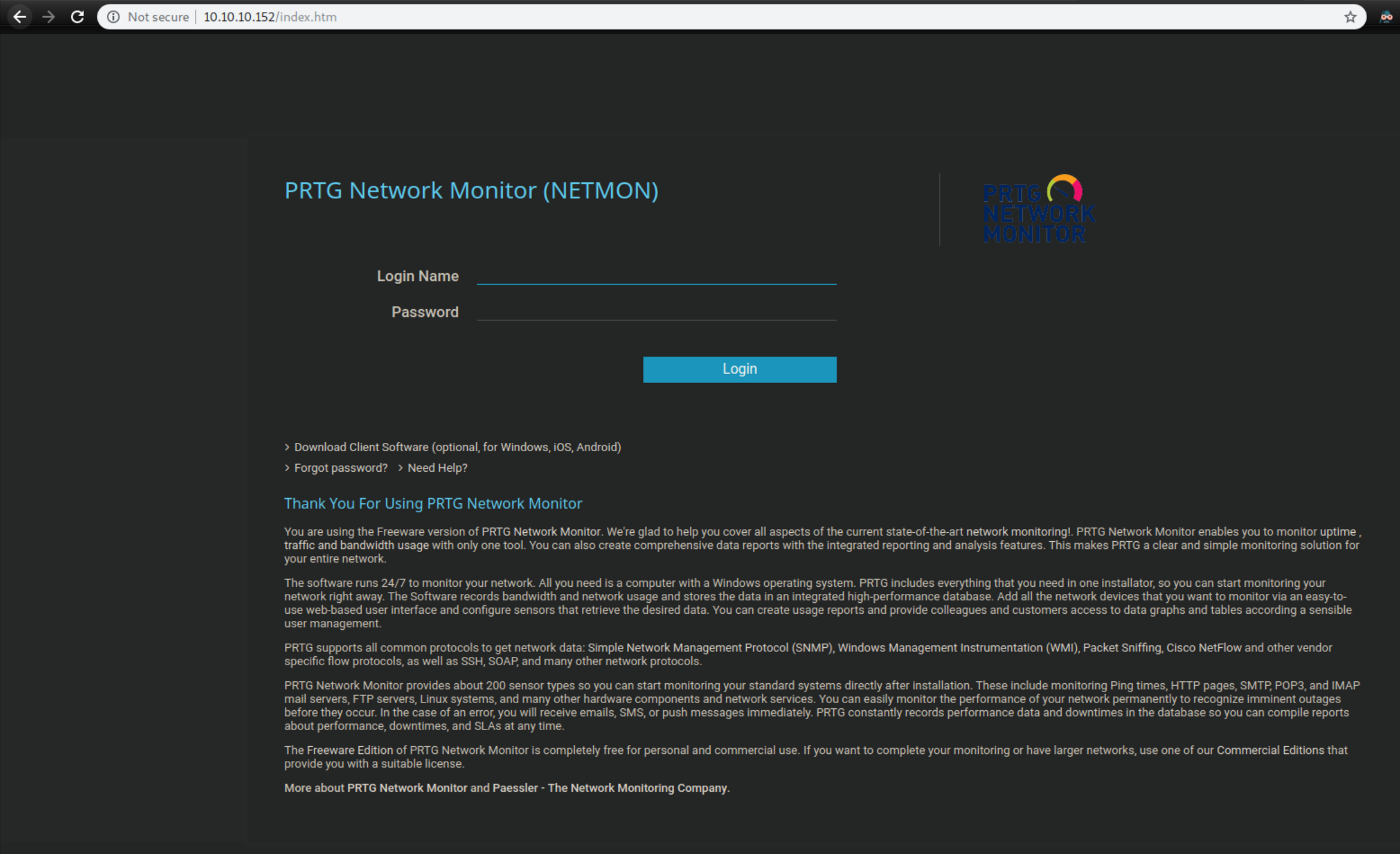 A quick google search comes up with a reddit post detailing how PRTG stores passwords in plain text. Oops.