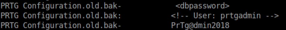 Using anonymous ftp again which has access to the entire C: drive, I downloaded c:\programdata\paessler\prtg network monitor\prtg configuration.*. Grepped for 'prtgadmin' and found this: