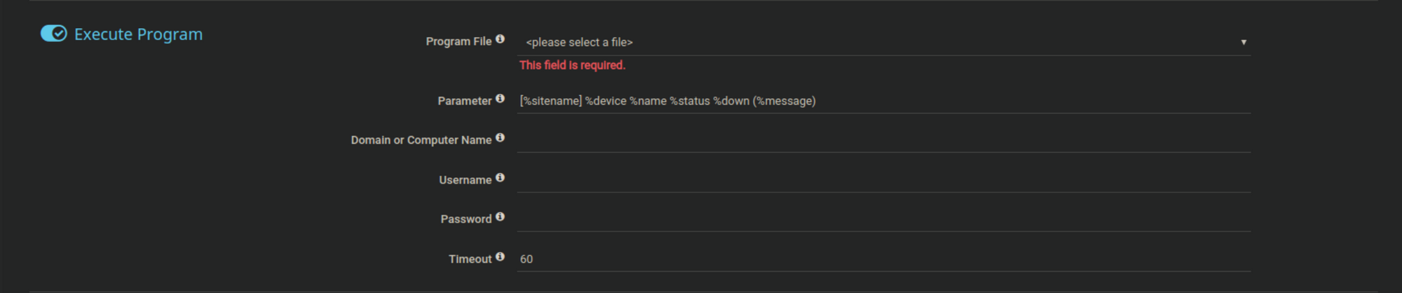 The program allows you to execute a specified program if a notification is triggered. I selected one of existing objects here: