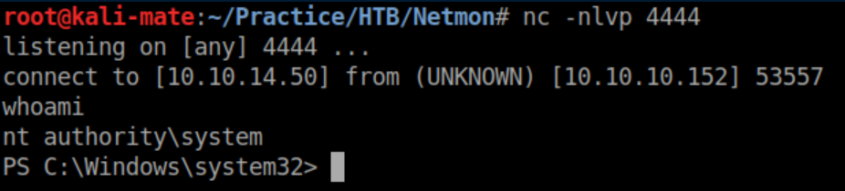 Save the changes and send a test notification. With a netcat listener, a reverse shell is gained: