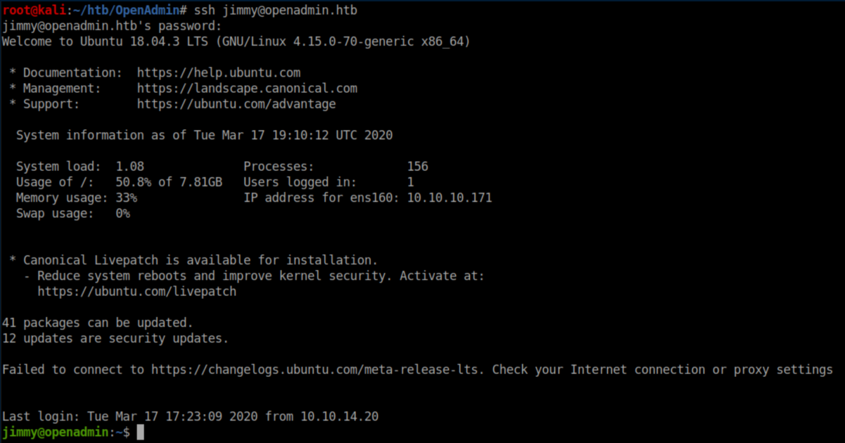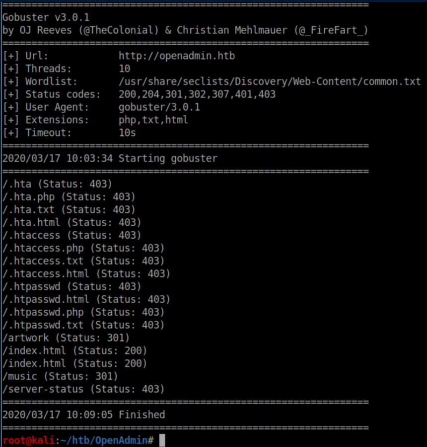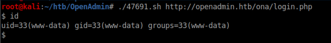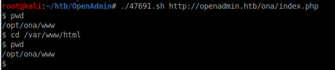 Note: 'login.php' worked on my initial run through the machine. On the error-checking run for this post, I had to feed the script http://openadmin.htb/ona/index.php.