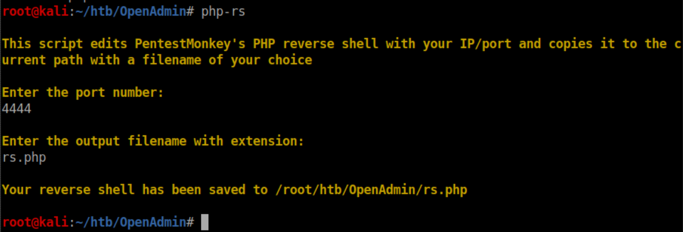 So let's get a real shell going. Since we know php is on the system, I'll go with a php reverse shell. First I'll run this script: