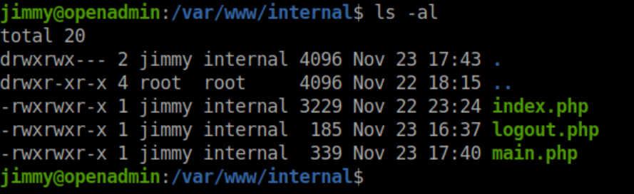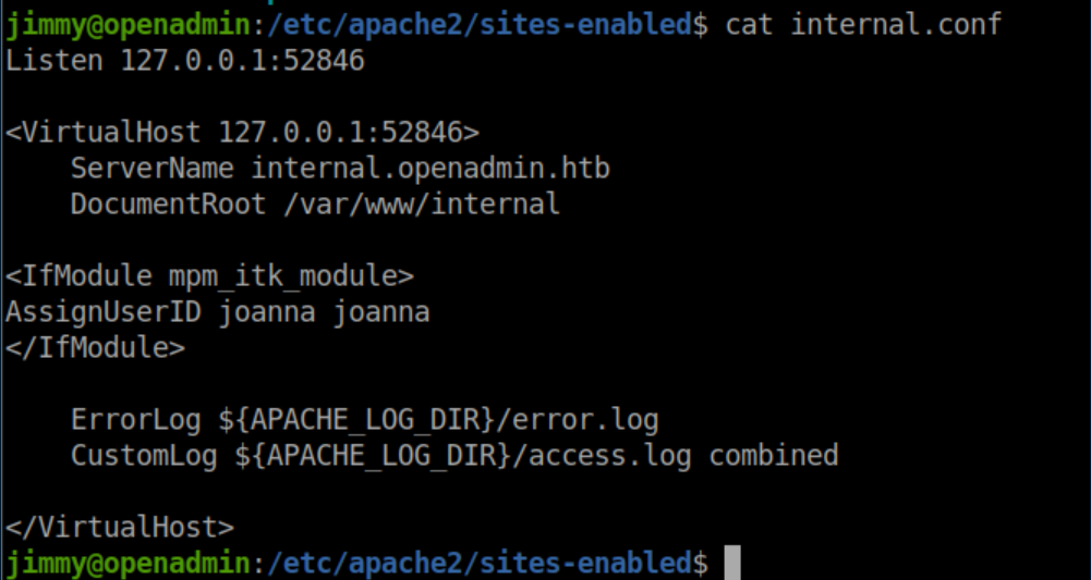 Now that we have a password for the internal site, we need to access it. Remember the 'sites-enabled' folder I mentioned? There's an 'internal.conf' file in there: