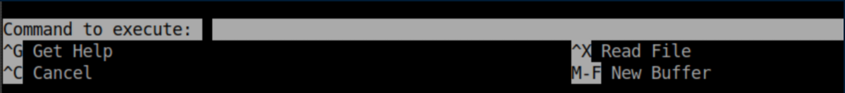 Control-r in nano prompts you for a file to insert from your current directory.The subsequent control-x prompts you to execute a command as you see above. If you were to type in the commandifconfig, you would see your network interface config appear innano. Try it!
