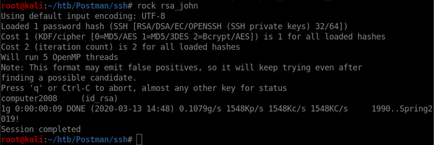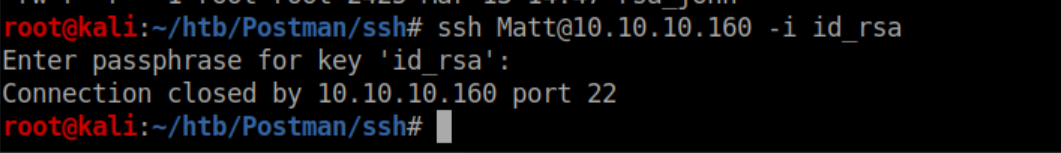 I copied and pasted the contents of this file into an id_rsa file on my system and tried to ssh in as Matt only to find it had a passphrase on it. ssh2john was used to output a file that John The Ripper could crack: