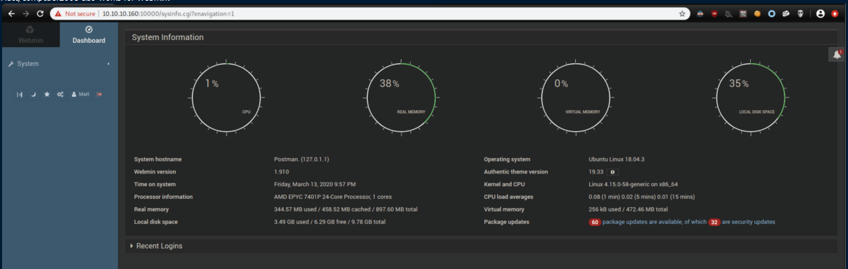 I took the creds over to Webmin was able to log in with Matt/computer2008:
