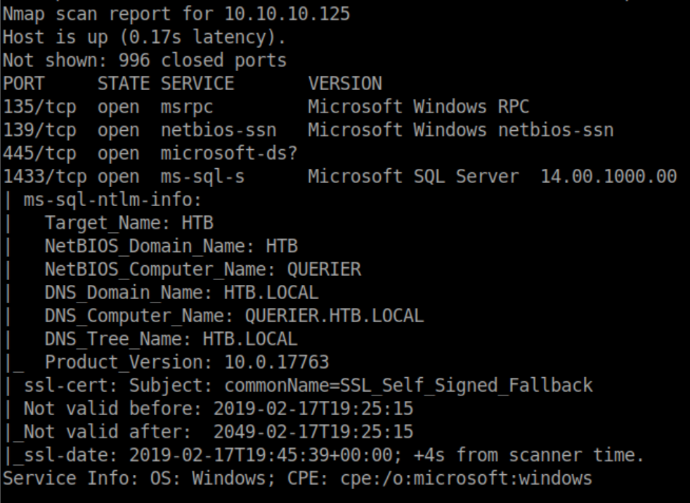 Querier was a straightforward Windows machine which I think was a fairly realistic box you might find on a typical corporate network.