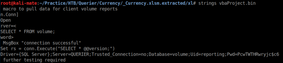 Microsoft Office documents (.doc, .xls, etc) are really zip archives so I unzip it and take a look at the vbaProject.bin file and find a login/password: