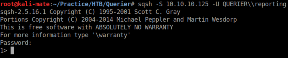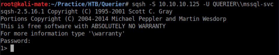 These creds worked for rpcclient but I couldn't really do anything with it and tried attacking SQL next with sqsh.